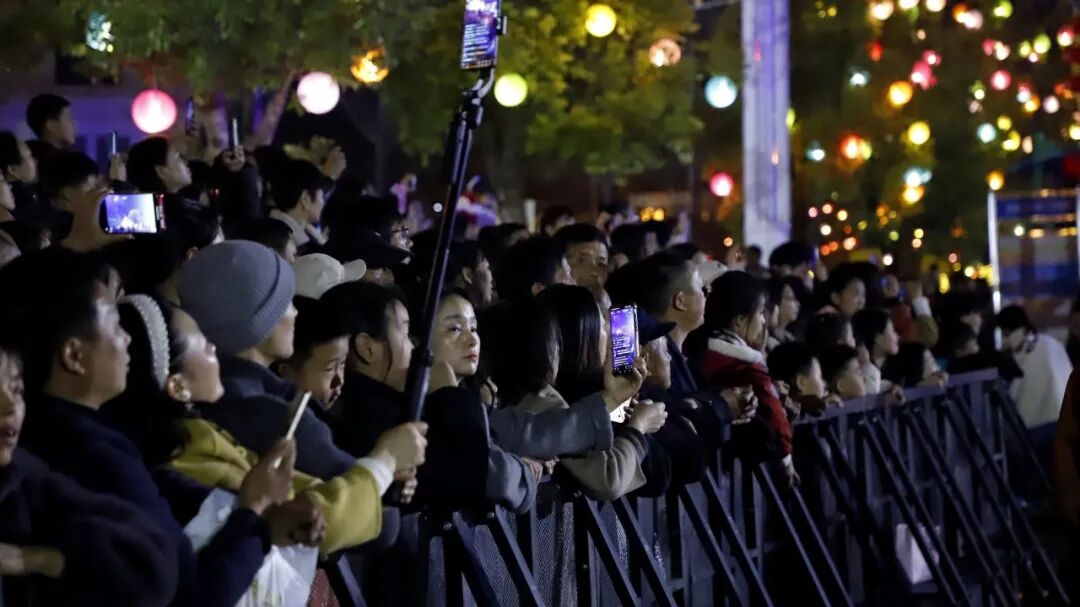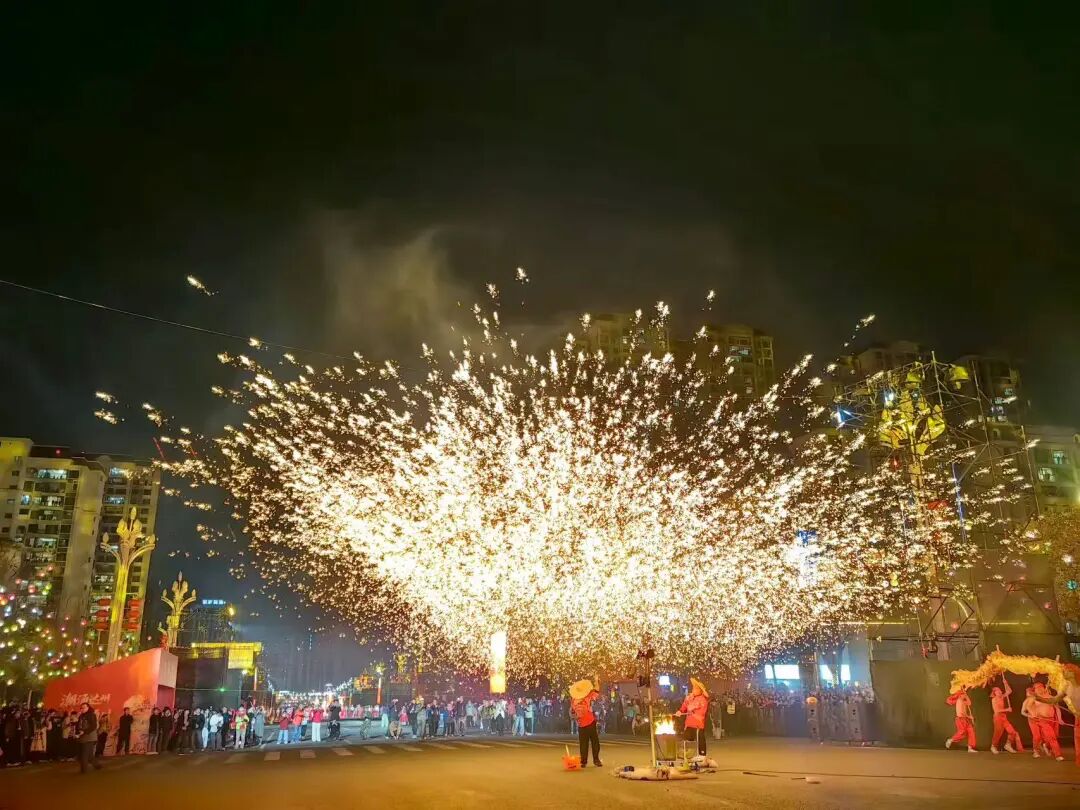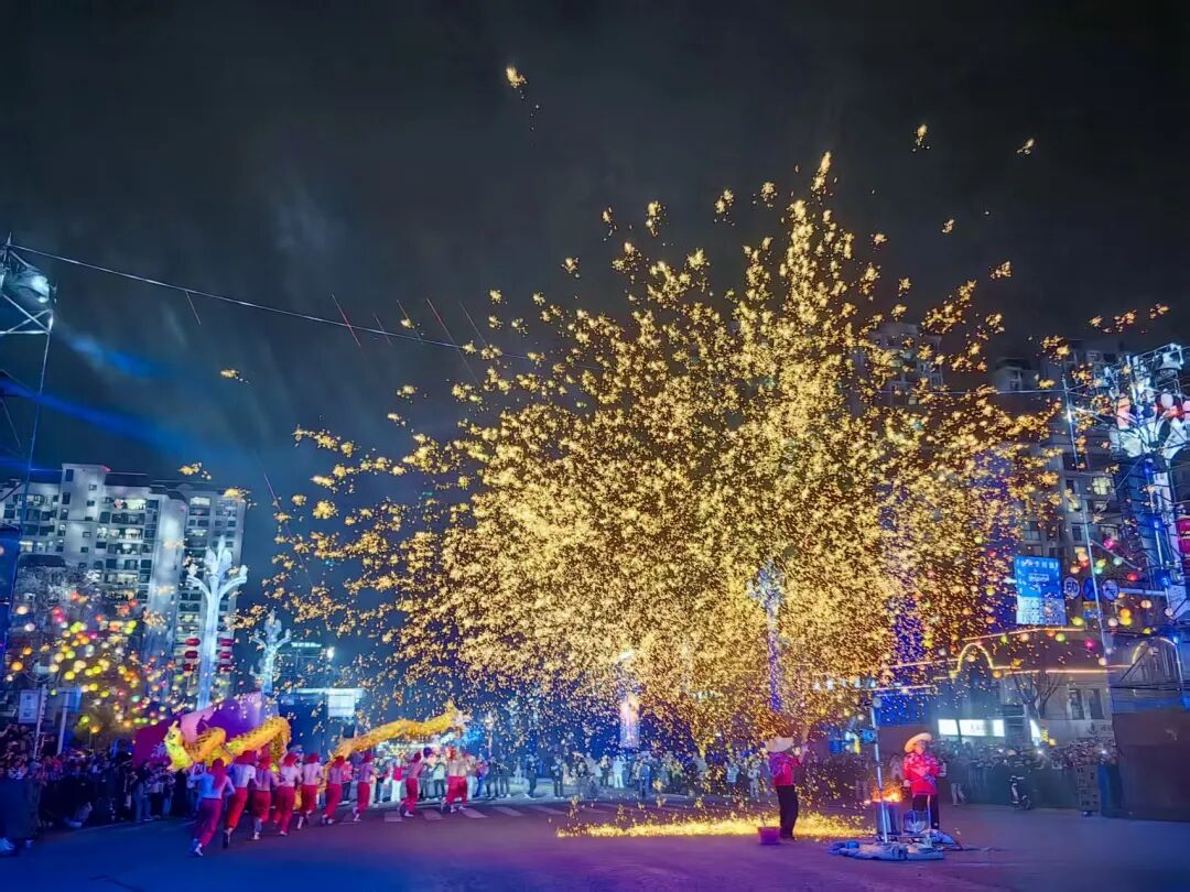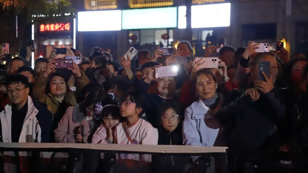 压轴登场的舞火龙、打铁花与火壶表演三项非遗绝活,更将现场气氛推向高潮。火龙翻腾映亮夜空,打铁花漫天星火璀璨,火壶表演技艺娴熟,市民们纷纷举起手机记录。滚烫的火花点亮了璀璨夜空,也温暖了这座城的新春之夜。最后,演员们分散全场为大家带来谢幕表演,演出也在温暖的氛围中圆满落幕。