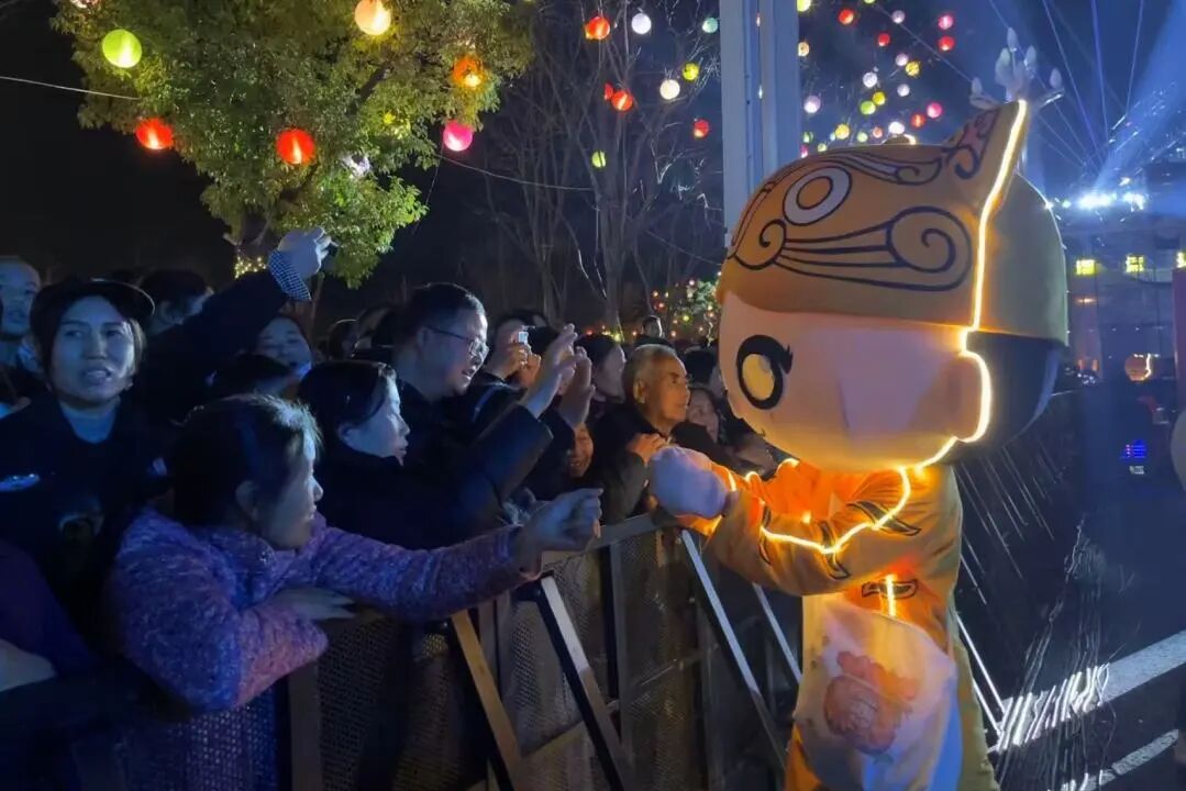 发光玩偶穿梭现场与观众互动,祥狮献瑞为观众送上新春祝福